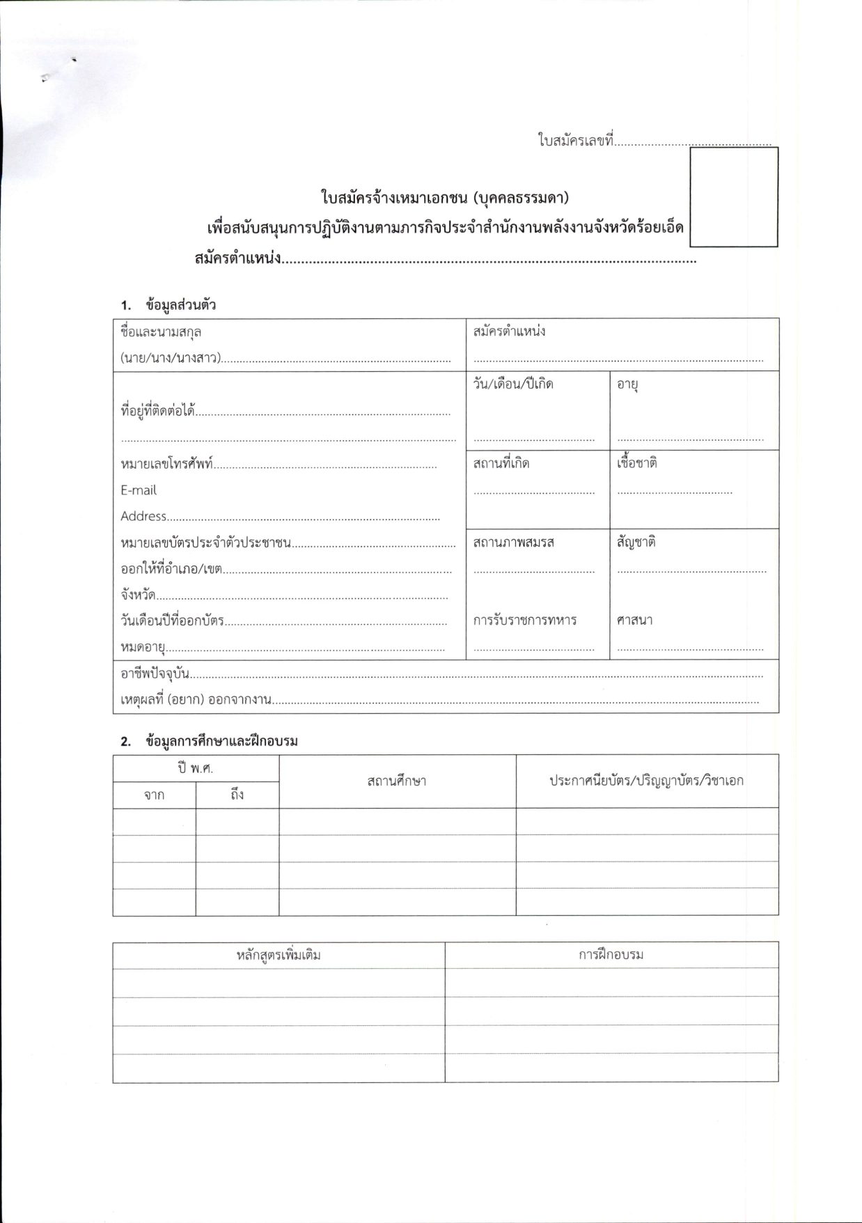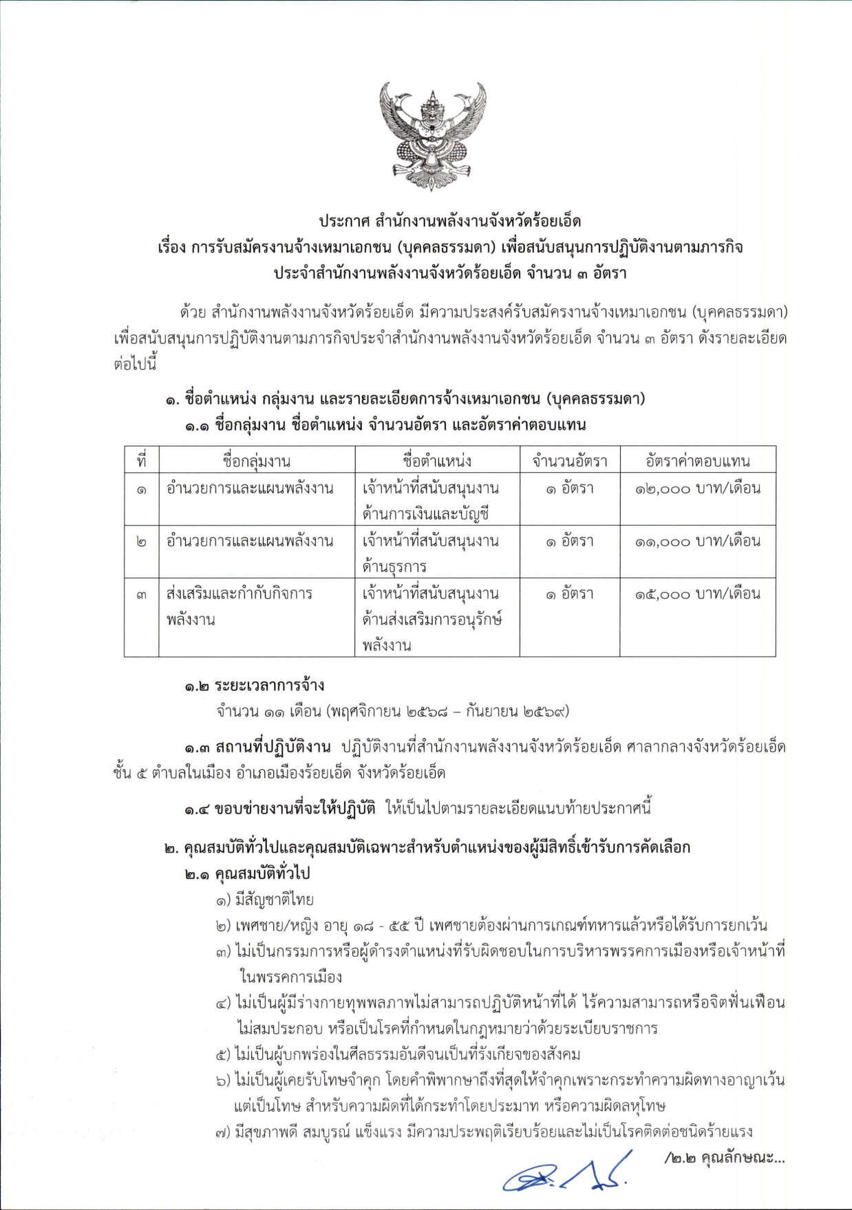 ประกาศสำนักงานพลังงานจังหวัดร้อยเอ็ด เรื่อง จ้างเหมาเอกชน (บุคคลธรรมดา) เพื่อสนับสนุนการปฏิบัติงานตามภารกิจประจำสำนักงานพลังงานจังหวัดร้อยเอ็ด ดังนี้