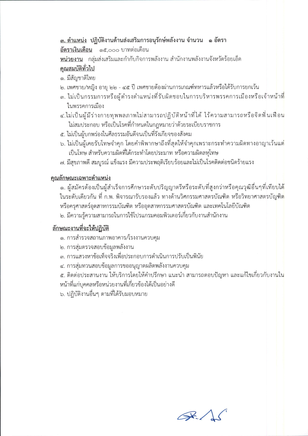 3. จ้างเหมาเอกชน(บุคคลธรรมดา) เพื่อสนับสนุนการปฏิบัติงานตามภารกิจที่ได้รับมอบหมายจากกรมพัฒนาพลังงานทดแทนและอนุรักษ์พลังงาน จำนวน ๑ อัตรา อัตราเงินเดือน 15,000 บาทต่อเดือน